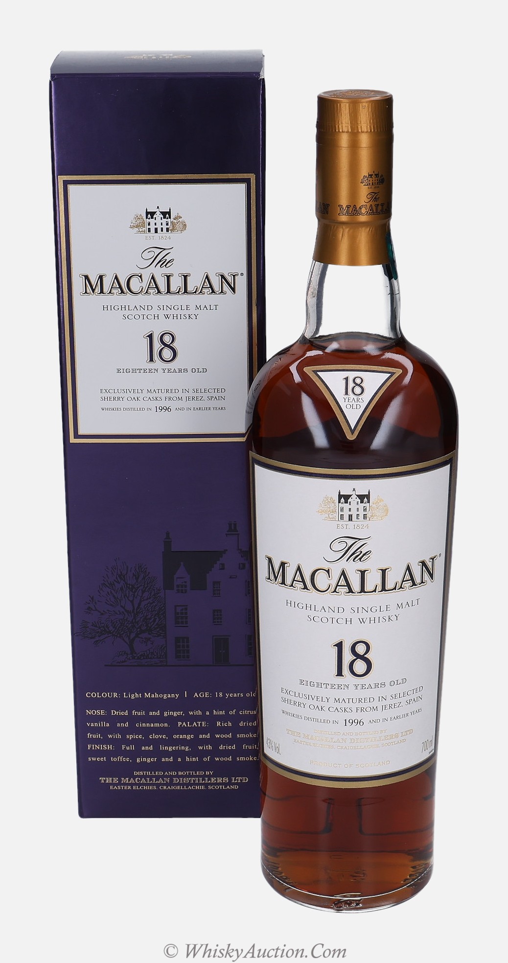 Distilled on the esteemed Macallan estate in Speyside, this 12 Year Old whisky embodies a legacy of uncompromising craftsmanship and tradition. Exclusively matured in hand-selected sherry seasoned oak casks from Jerez, Spain, it gains remarkable richness and depth. The result is a whisky of sumptuous golden hue, offering a complex aroma and a deeply satisfying taste profile marked by dried fruit, spice, and oak. This expression showcases the enduring commitment to quality that defines The Macallan.