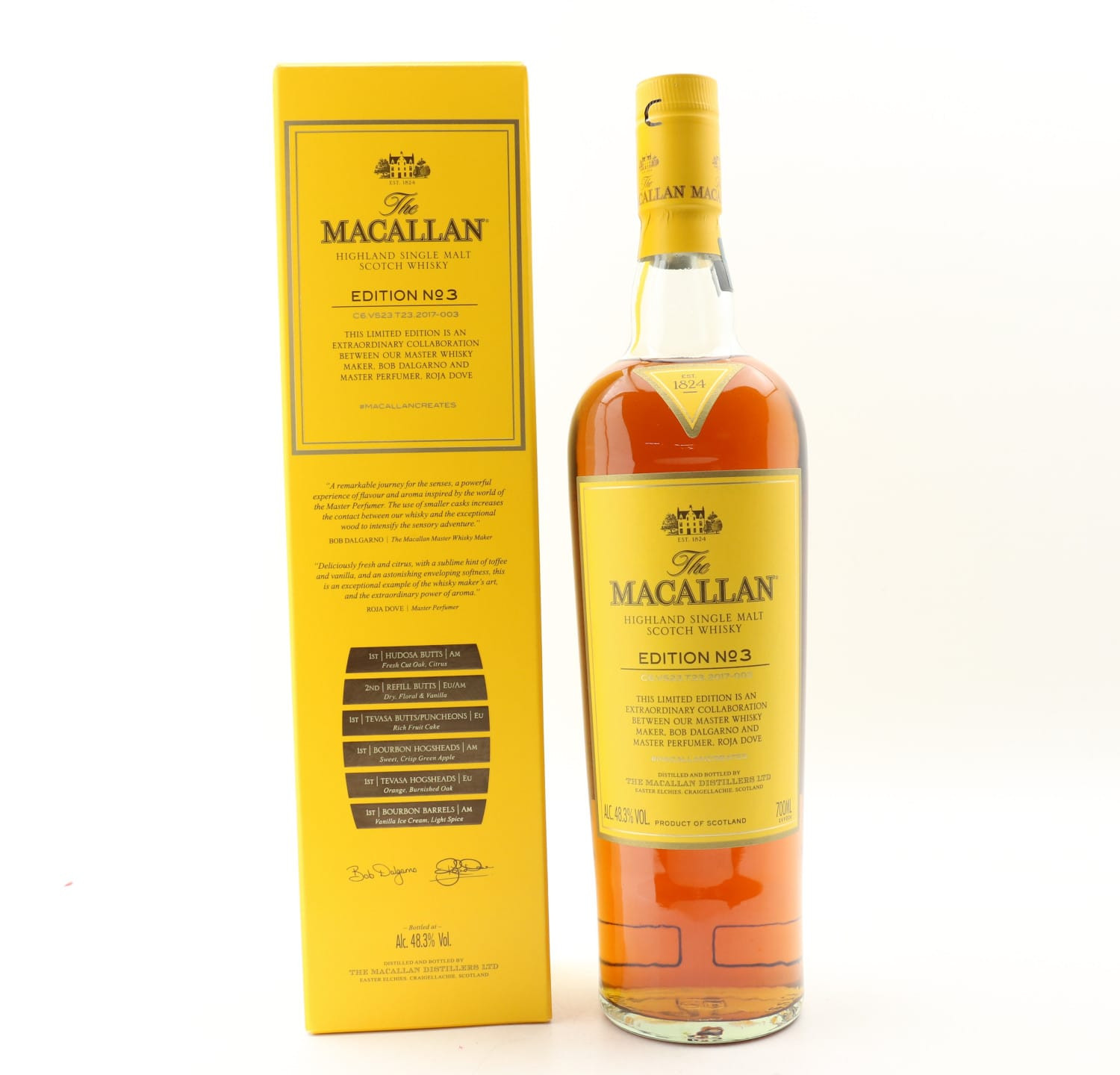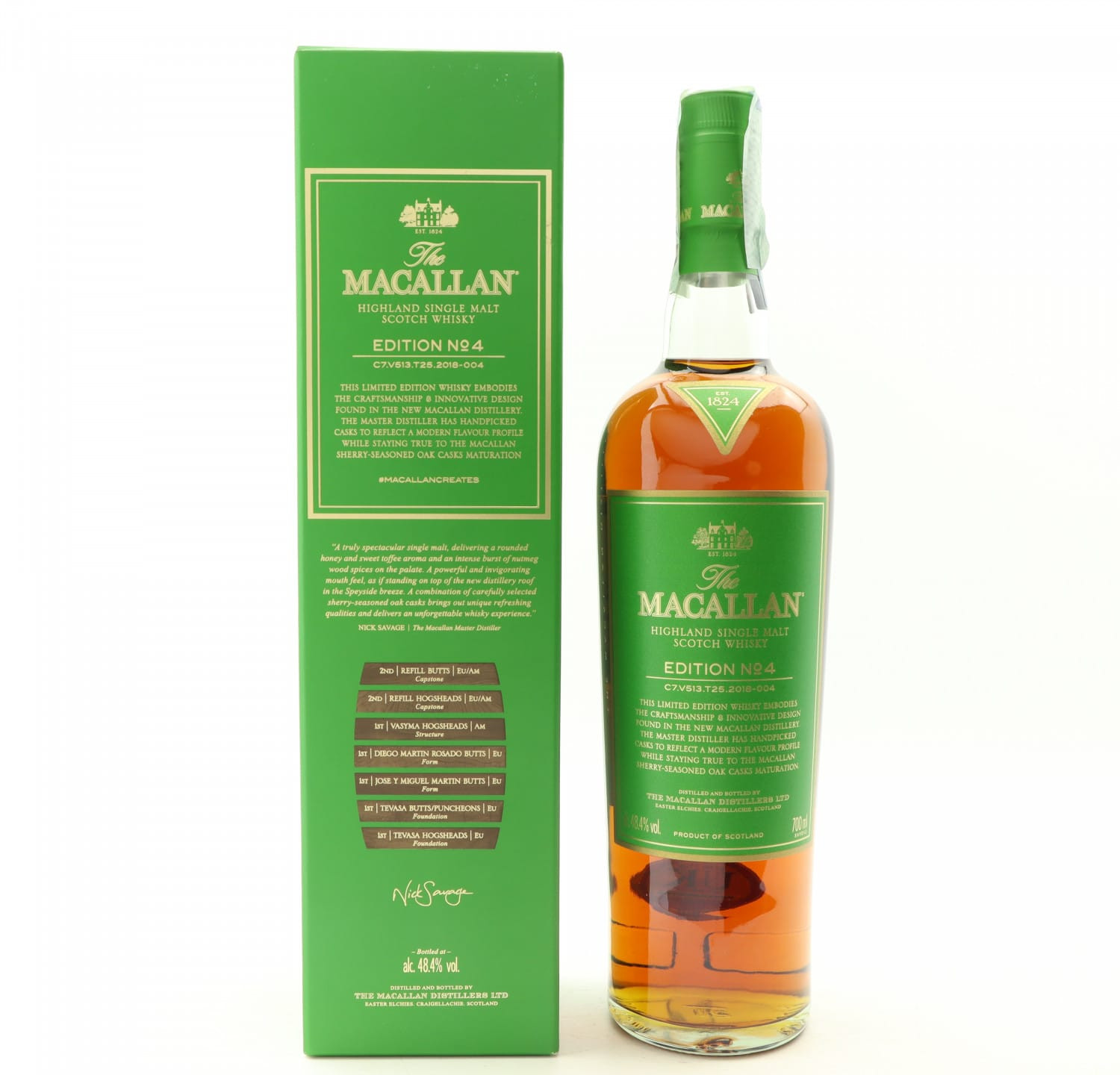 Born from the heart of Speyside, The Macallan Genesis celebrates the unveiling of the distillery’s stunning new home on the Easter Elchies estate. Distilled in 2018, this limited release—one of only 2500 bottles—embodies the renowned Macallan character, shaped by curiously small stills and a precise spirit cut. At 45.5% ABV, it offers a rich and complex flavour profile, reflecting the distillery’s dedication to exceptional cask management and the legacy begun by founder Alexander Reid in 1824. Each bottle is accompanied by a signed lithographic print, a unique artistic tribute to the architectural marvel that houses this exceptional single malt.